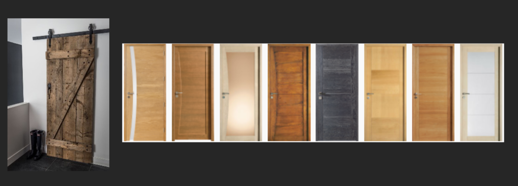 Plusieurs solutions possibles pour les portes hormis les portes traditionnelles vous pouvez pour un gain de place ou par esthétique les remplacer par des portes à galandage ou des portes montée sur rail, portes battantes …